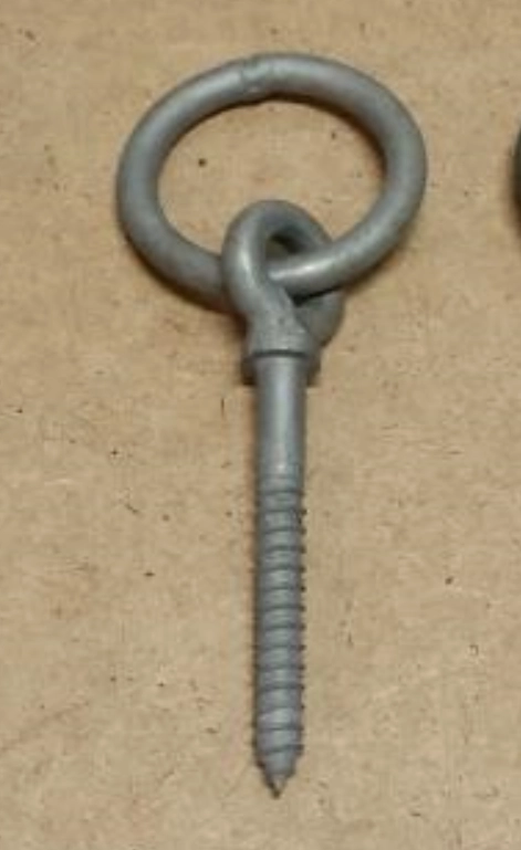 Båtring, fransk treskrue, 12mm, med ring, galvanisert, 100mm lengde på bolt (65mm med gjenger), diameter ring ca 55mm.