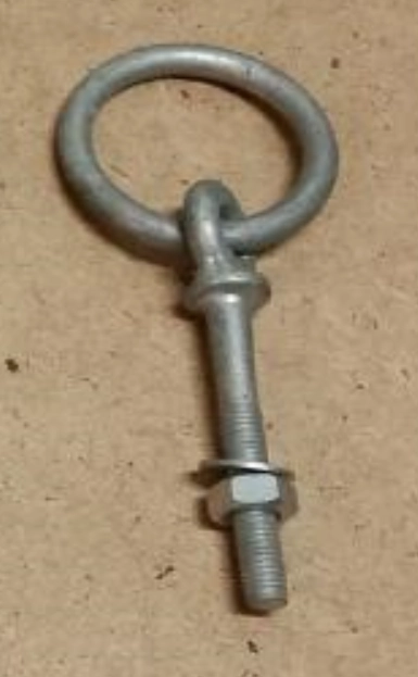 Båtring, fransk treskrue, 12mm, med ring, galvanisert, 100mm lengde på bolt (65mm med gjenger), diameter ring ca 55mm.