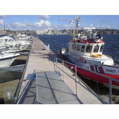 Vi leverer marineteks brede sortiment av bølgedempere. Dette er betongflytebrygger som er spesiallaget for å dempe bølger. De finnes i bredder fra 3 til 5m, og i 2 ulike høyder. K-serien er den kraftigste, med betongskjørt som gir total høyde på 1.8m demping.
