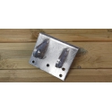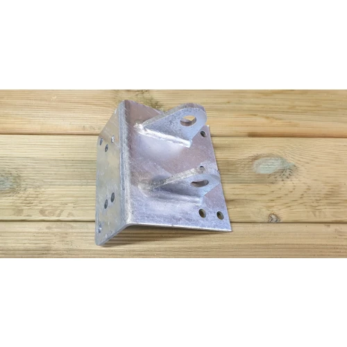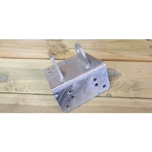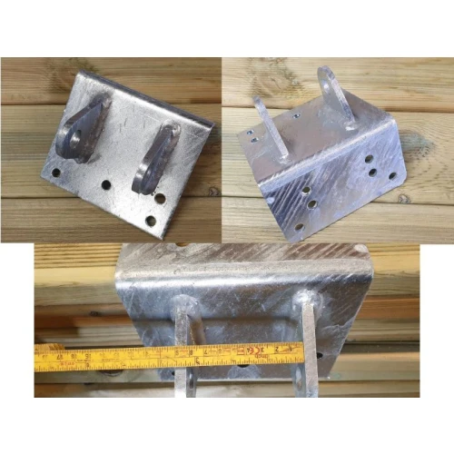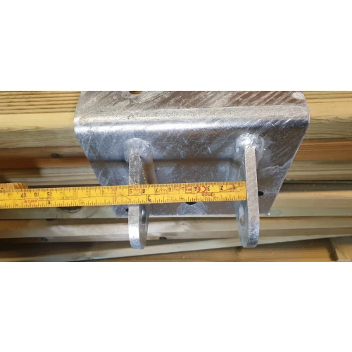 Bredde 175mm, Høyde 150mm, dybde 100mm, 5mm gods. Hull med Ø20mm. Bruk bolt som er 130mm lang.