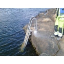 5 trinn. Bredde 0,6m, Høyde ca 1,25m fra bryggekant. Høyde på bøyle: 0.7m