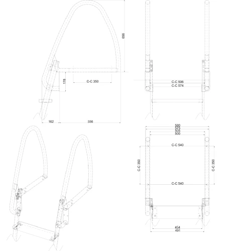 Badetrapp, 4 trinn med tretrinn, rustfritt, syrefast A4 med vipp (for flytebrygge eller fast)
