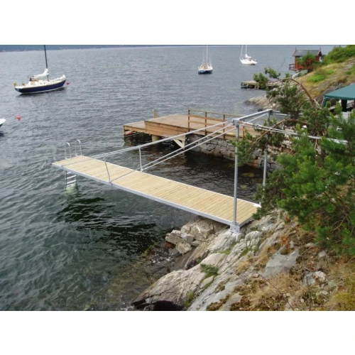 Kvalitetsbrygge i varmgalvanisert stål med trykkimpregnert tredekke.