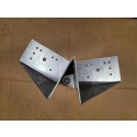 Meget solid spesialhengsel basert på hjørnebeslag for hjørneforsterkning for flytebrygger. Kraftig konstruksjon i 4mm stål, varmgalvanisert. Multi-borret for å passe ulike dimensjoner på rammeverk. Med mulighet for kjettingfeste og sammenkobling 30x30cm H=18cm.