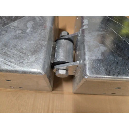 Spesialhengsel, hjørnebeslag, med ører og rør (han-hun) feste, med gummi og bolter