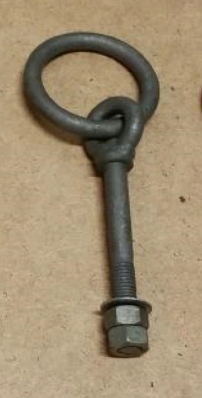 Båtring, fransk treskrue, 12mm, med ring, galvanisert, 100mm lengde på bolt (65mm med gjenger), diameter ring ca 55mm.