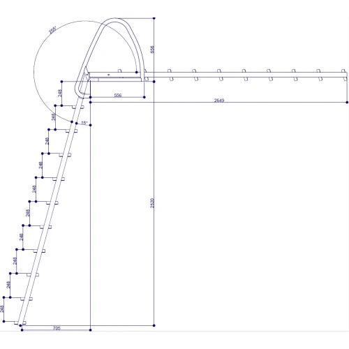 Se eget bilde for angitte mål på stigen.