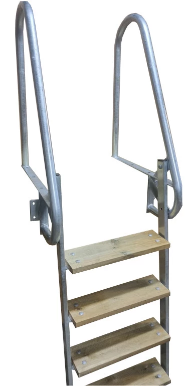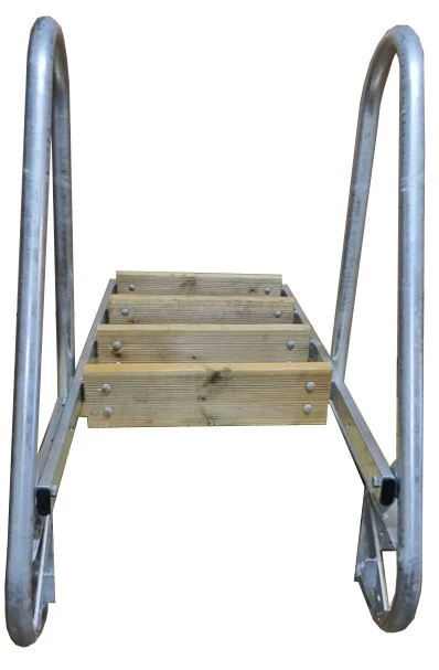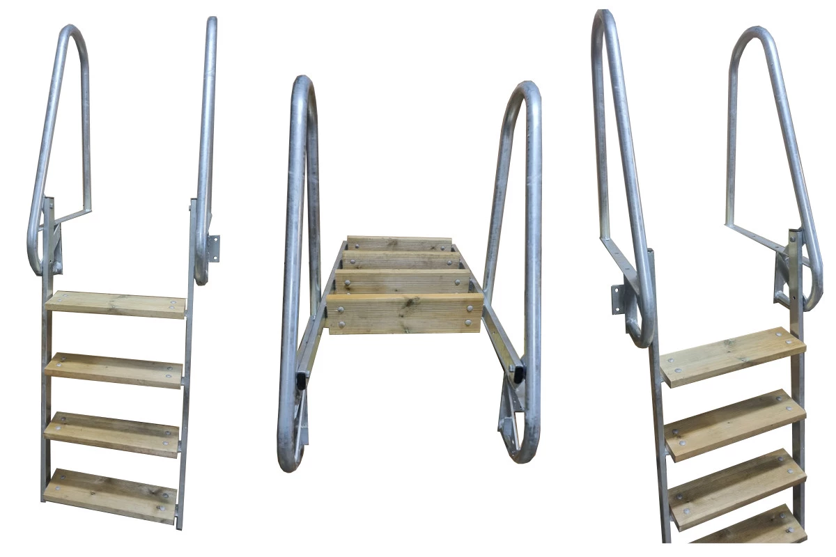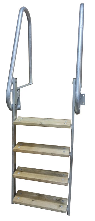 Badetrapp, 4 trinn med tretrinn, galvanisert stål med vipp (for flytebrygge eller fast)
