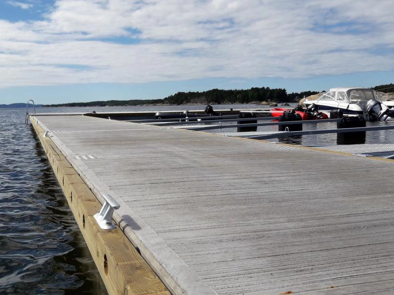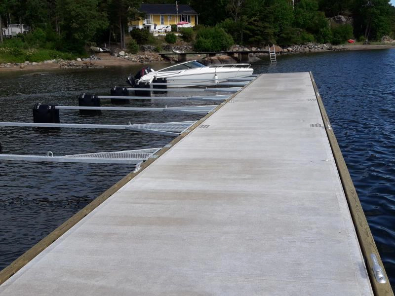 Heavy Duty (HD) betongbrygge - en brygge som tåler litt ekstra. En kraftigere type betongbrygge med sterkere innfestingsmuligheter for fortøyningsbommer, og større styrke på sammenkoblinger mellom seksjonene. Leveres med trefender eller skinne for feste av fortøyningsbommer. Trekkerør for strøm og vann, egne brønner for el-koblinger, kan spesialtilpasses ulike behov.
