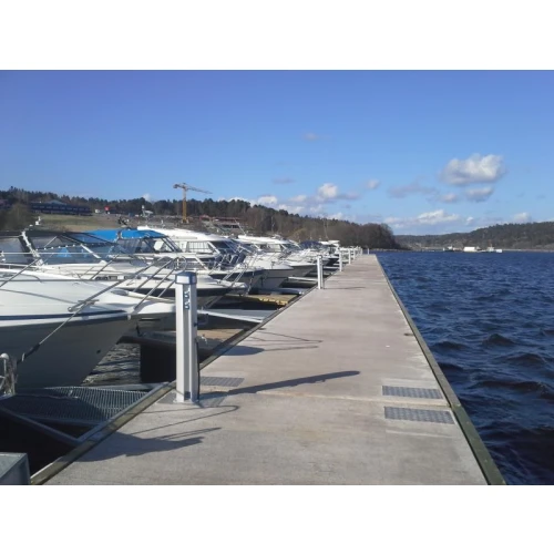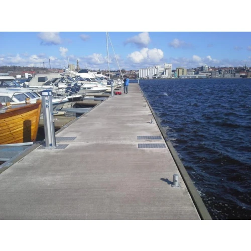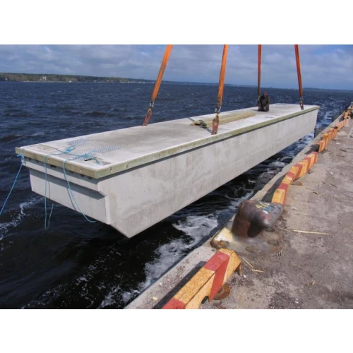 Vi leverer marineteks brede sortiment av bølgedempere. Dette er betongflytebrygger som er spesiallaget for å dempe bølger. De finnes i bredder fra 3 til 5m, og i 2 ulike høyder. K-serien er den kraftigste, med betongskjørt som gir total høyde på 1.8m demping.