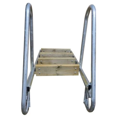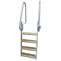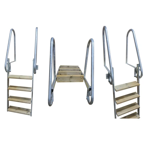 Badetrapp, 4 trinn med tretrinn, galvanisert stål med vipp (for flytebrygge eller fast)