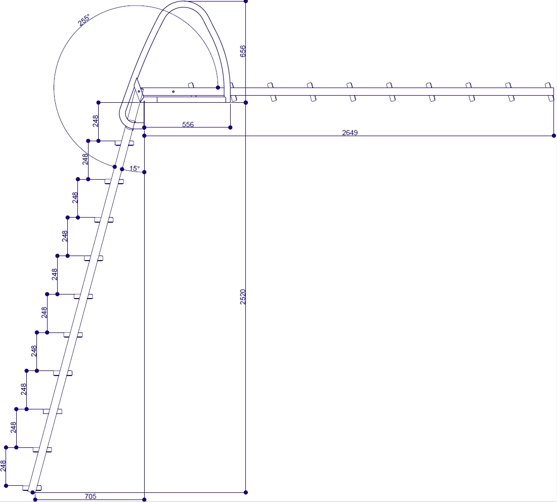 Badetrapp, 10 trinn med tretrinn, rustfritt, syrefast A4 med vipp (for flytebrygge eller fast)