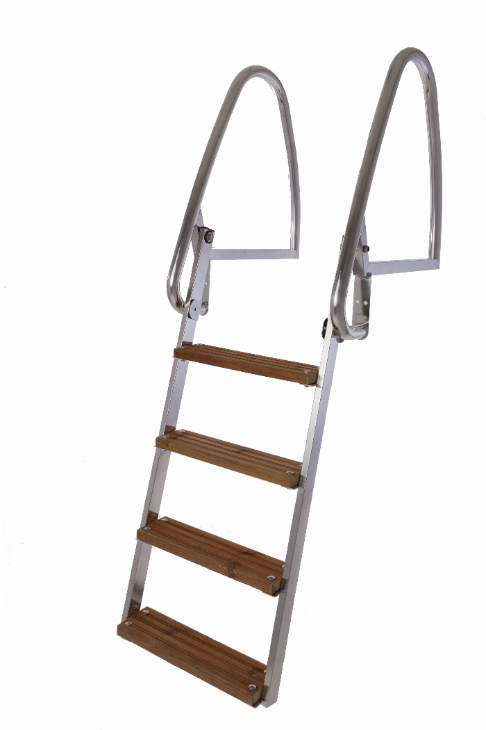 Badetrapp, 4 trinn med tretrinn, rustfritt, syrefast A4 med vipp (for flytebrygge eller fast)