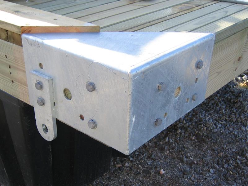 Meget solid hjørneforsterkning for flytebrygger. Kraftig konstruksjon i 4mm stål, varmgalvanisert. Multi-borret for å passe ulike dimensjoner på rammeverk. Med mulighet for kjettingfeste og sammenkobling 30x30cm H=18cm