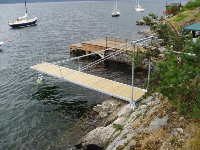 Kvalitetsbrygge i varmgalvanisert stål med trykkimpregnert tredekke.
