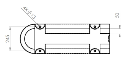 Med endestopp er det avslutning for bommen på enden. Skal elementet brukes utenom enden må det benyttes åpen løsning. Se under alternativer.