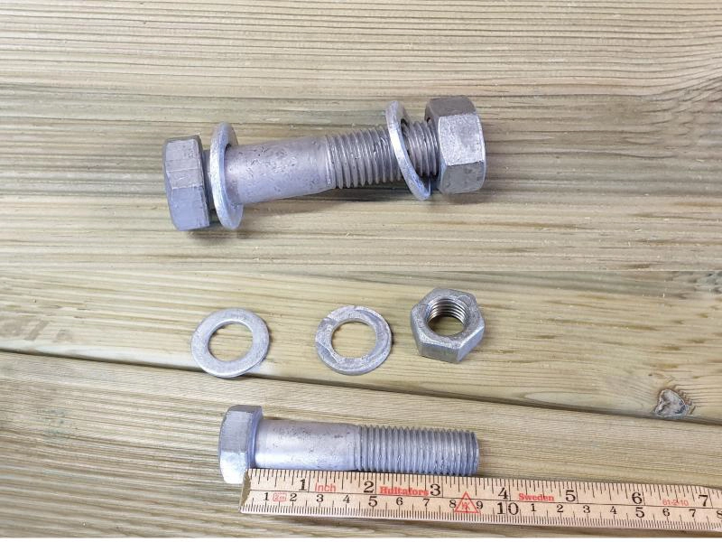 Lengde 90mm (+ hode), Ø20mm. Med 2 muttere og 2 skiver.Settet er 1 stk.