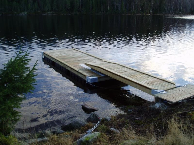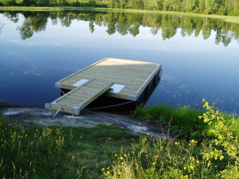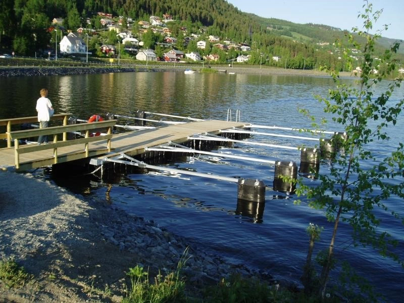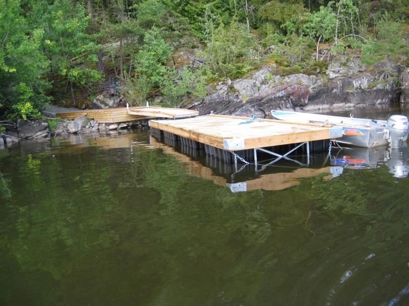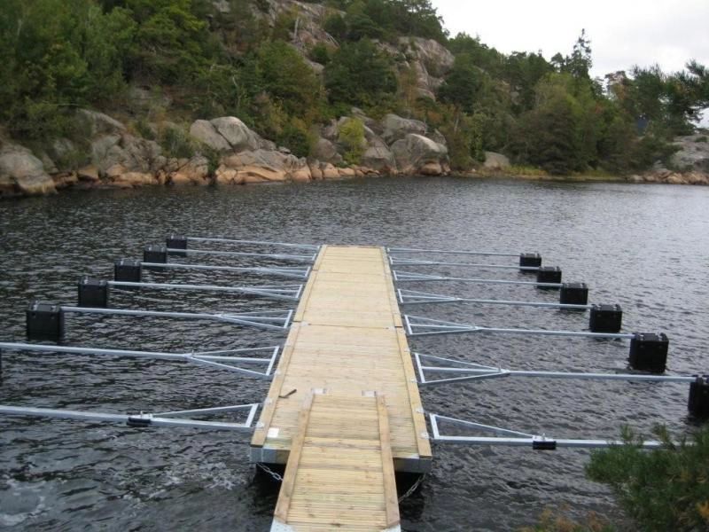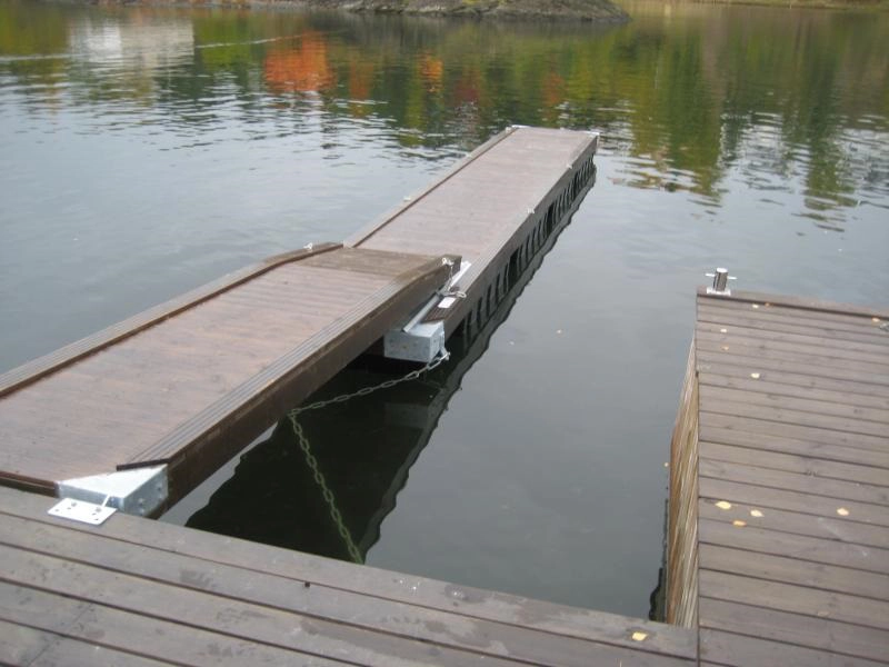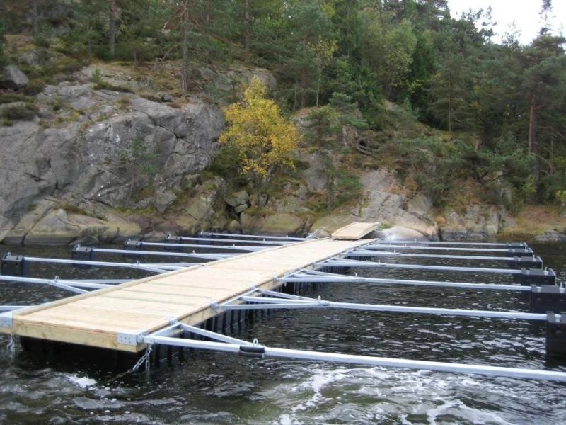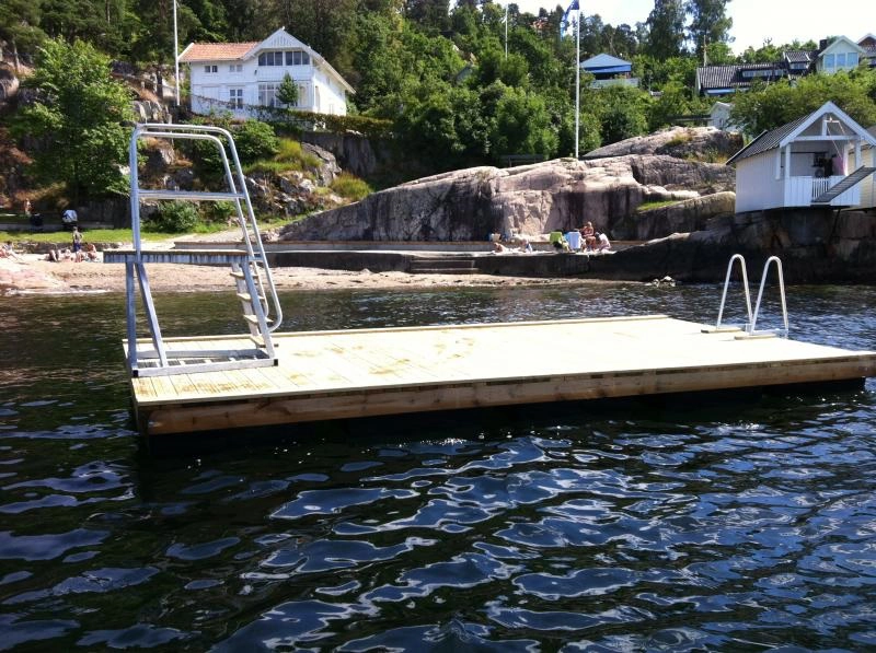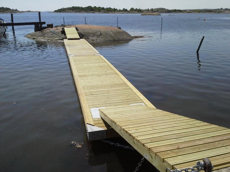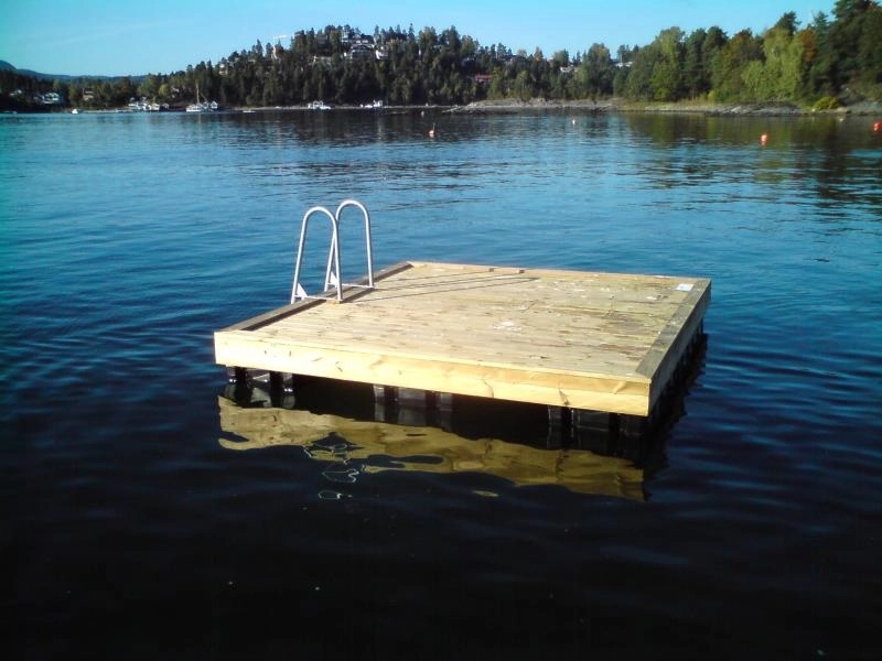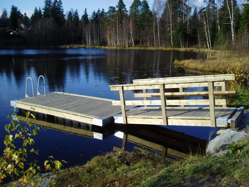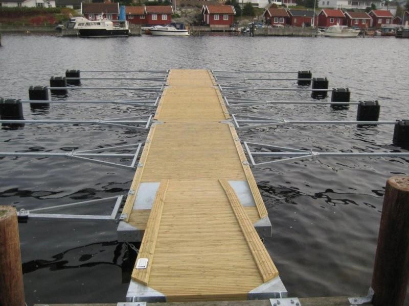 En solid brygge som kan bygges med ulike flyteelementer avhengig av ønsket flytehøyde og bæreevne.