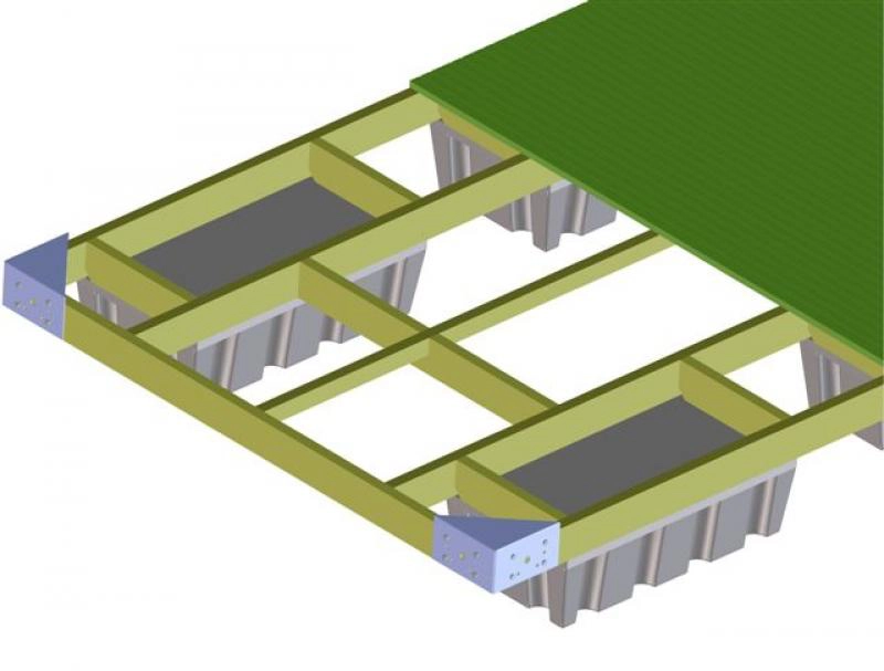 Leveres med 4 stk 370 liters flyteelementer og gode fester i alle hjørner.