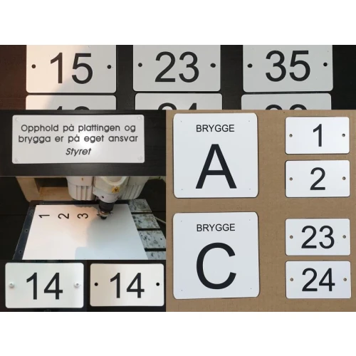 Skilt for bryggenummer 95x55 mm, 3,2mm tykk