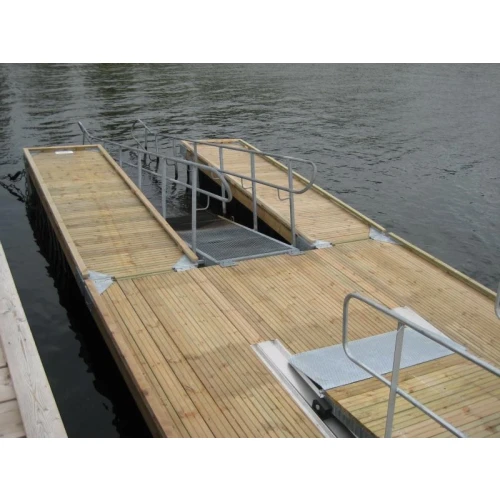 Badebrygge 2 x 3.5 meter med treverk og plastflottører inkludert badetrapp