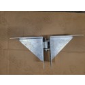 Meget solid spesialhengsel basert på hjørnebeslag for hjørneforsterkning for flytebrygger. Kraftig konstruksjon i 4mm stål, varmgalvanisert. Multi-borret for å passe ulike dimensjoner på rammeverk. Med mulighet for kjettingfeste og sammenkobling 30x30cm H=18cm.