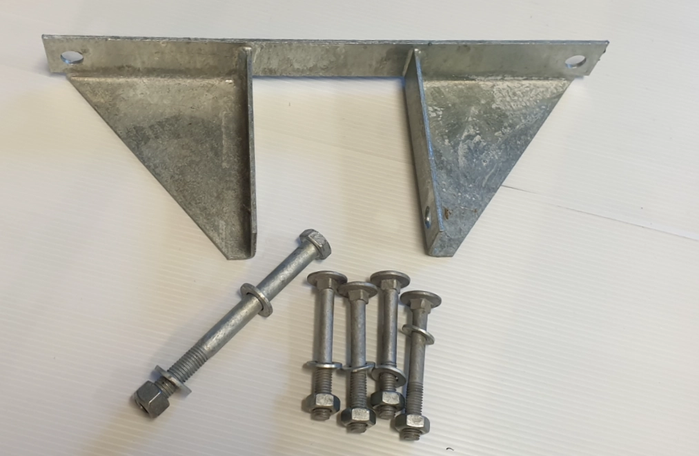 Låsebolter med skive og mutter er også med, for å feste tredekket.